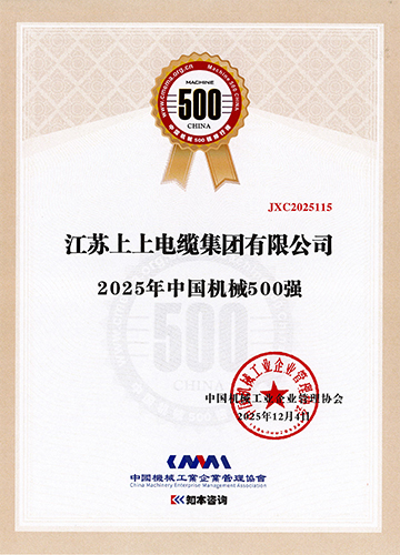 12月4日,由中國機械工業企業管理協會主辦的2025年中國機械500強研究報告發布會在江蘇蘇州隆重舉行。江蘇上上電纜集團憑借卓越的綜合實力,再次入選“2025世界一流機械企業500強”、“2025年中國機械500強”、“2025年中國機械500大”三大榜單。這已是上上電纜連續第20年入選中國機械500強榜單。