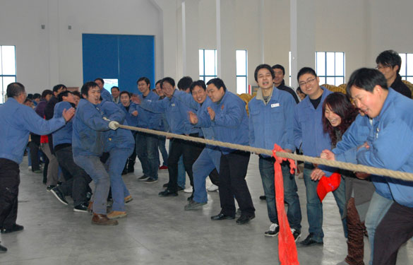 1月29日,為迎接兔年的到來,豐富員工的業余文化生活,提高員工之間的團隊合作精神,江蘇上上電纜集團在北廠區舉行了2011年迎新年趣味競賽,共有200余名員工參加了此次比賽。 經過激烈的爭奪,最終低壓分廠摘得本次綁腿跑比賽與拔河比賽的冠軍;中壓分廠獲得了跳繩比賽與車輪滾滾比賽的冠軍。