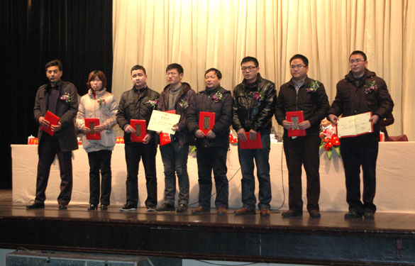 董事長、總經理丁山華向優秀員工頒發證書及獎金