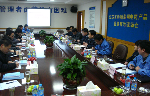 日前,江蘇省漁船檢驗(yàn)局在江蘇上上電纜集團(tuán)召開(kāi)江蘇省漁船用電纜現(xiàn)場(chǎng)檢測(cè)與產(chǎn)品質(zhì)量分析會(huì),江蘇省漁船檢驗(yàn)局總工程師鳳要武參加了集中檢測(cè)活動(dòng)。集團(tuán)副總經(jīng)理朱洪祥出席了此次會(huì)議。