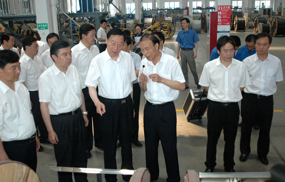 6月13日,中共江蘇省委書記羅志軍來江蘇上上電纜集團視察。江蘇省委常委、省委秘書長樊金龍、省長助理、省科技廳廳長徐南平、常州市委書記閻立、市長姚曉東及溧陽市委書記盛建良、市長蘇江華等領(lǐng)導(dǎo)陪同視察。集團董事長、總經(jīng)理丁山華、常務(wù)副總經(jīng)理丁志鴻陪同羅書記一行參觀了西廠區(qū)生產(chǎn)現(xiàn)場。